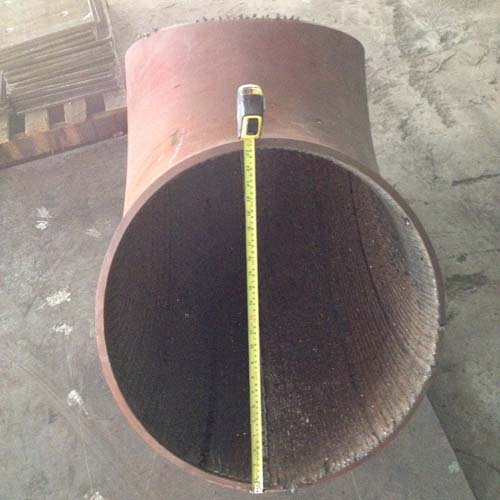 這種生產工藝是使用普通直鋼管,在其內部堆焊耐磨層,可以實現最小80mm的耐磨管道堆焊。其生產長度可以達到12000mm。