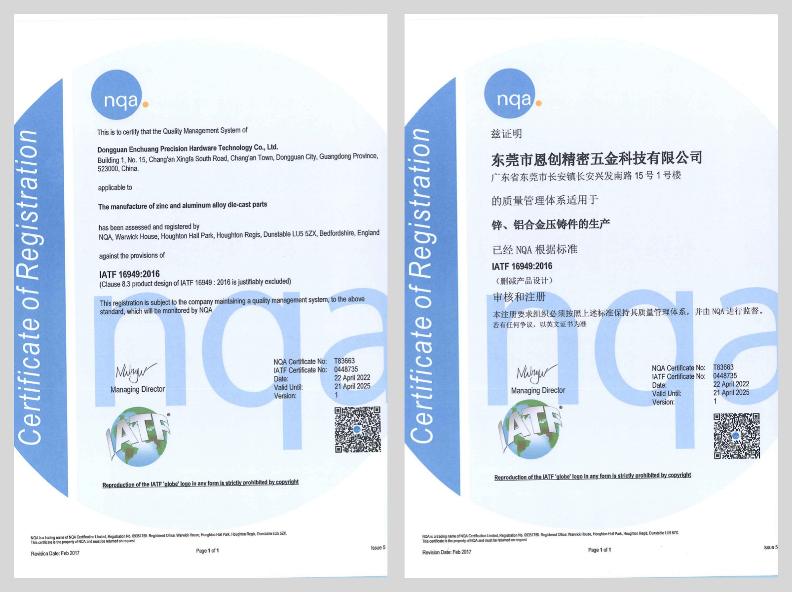 在科技飛速發(fā)展的時(shí)代,企業(yè)的核心競(jìng)爭(zhēng)力不僅僅在于創(chuàng)新的技術(shù)和優(yōu)質(zhì)的產(chǎn)品,更在于完善的管理體系和對(duì)品質(zhì)的不懈追求。恩創(chuàng)科技,作為行業(yè)的領(lǐng)軍者,以實(shí)際行動(dòng)詮釋了卓越品質(zhì)的內(nèi)涵,恩創(chuàng)科技持有IATF16949、ISO9001、ISO45001 和 ISO14000 體系證書(shū)。四大體系認(rèn)證,是恩創(chuàng)科技發(fā)展歷程中的重要里程碑,也是我們邁向更高目標(biāo)的新起點(diǎn)。