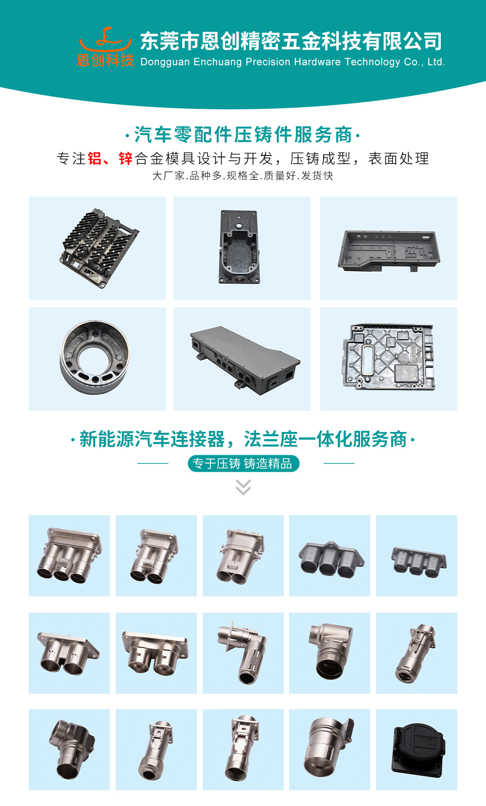 恩創精密五金專業從事鋅合金壓鑄件的生產加工廠,加工產品:連接器外殼,新能源連接器殼體,小家電殼體壓鑄廠,恩創擁有20臺50-300噸壓鑄機,自主開模,所有產品全部目視全檢出貨.