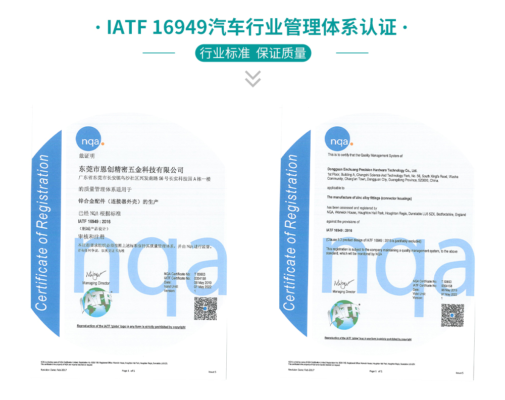 東莞恩創精密,鋅合金壓鑄廠家,20臺300噸鋅合金壓鑄機臺,服務于全球多家知名廠商,連接器外殼,新能源連接器外殼壓鑄件,公差可達正負0.002.鹽霧測試最高可達720小時,貫穿孔精度全部使用CCD全檢.